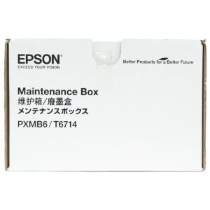 La caja de mantenimiento de tinta T6714 almacena la tinta que sale del sistema durante la limpieza del cabezal de impresión. Su impresora y su software le informarán cuándo debe reemplazar la caja de mantenimiento.